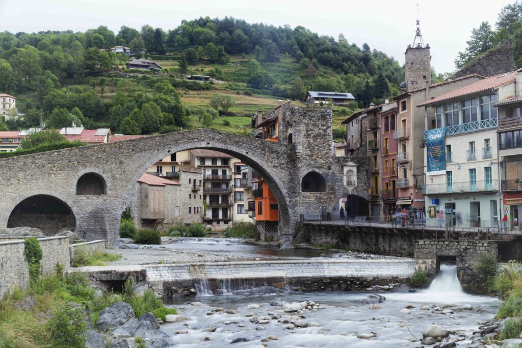 Destaca la iglesia de Santa María, construida en estilo románico en el siglo XII. y el Puente Nuevo, un puente de piedra que cruza el río Ter y es uno de los símbolos del pueblo.
