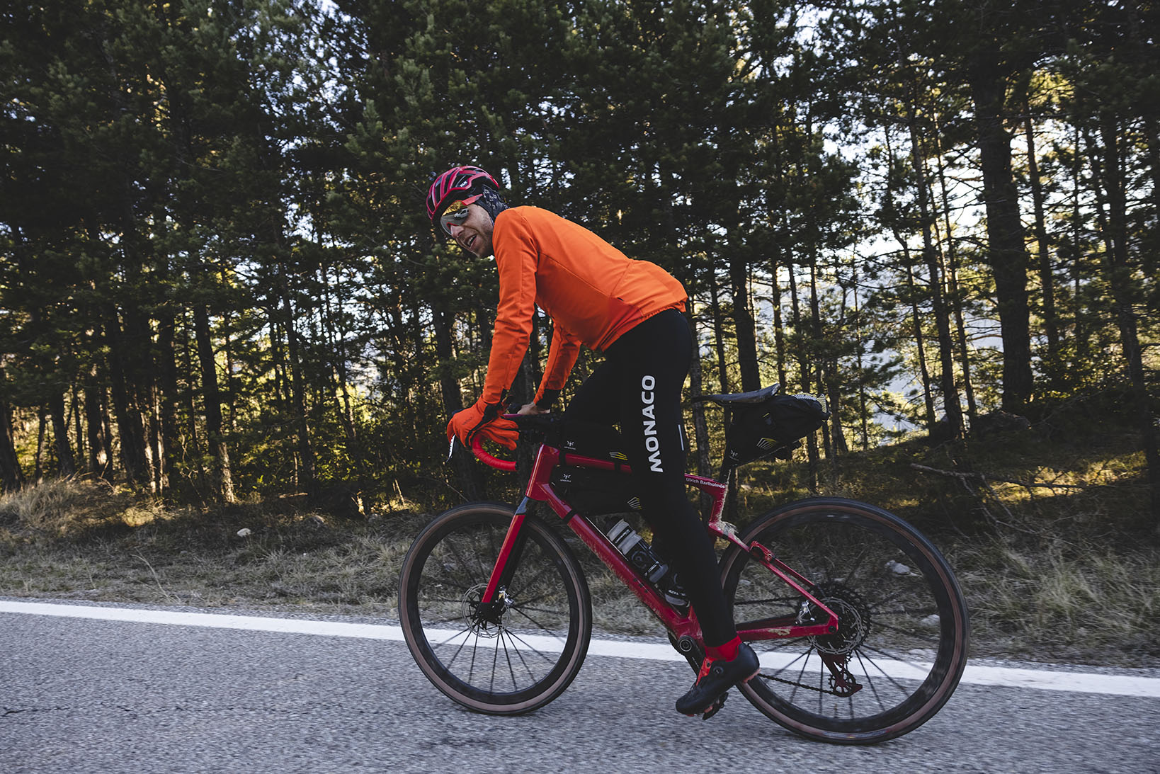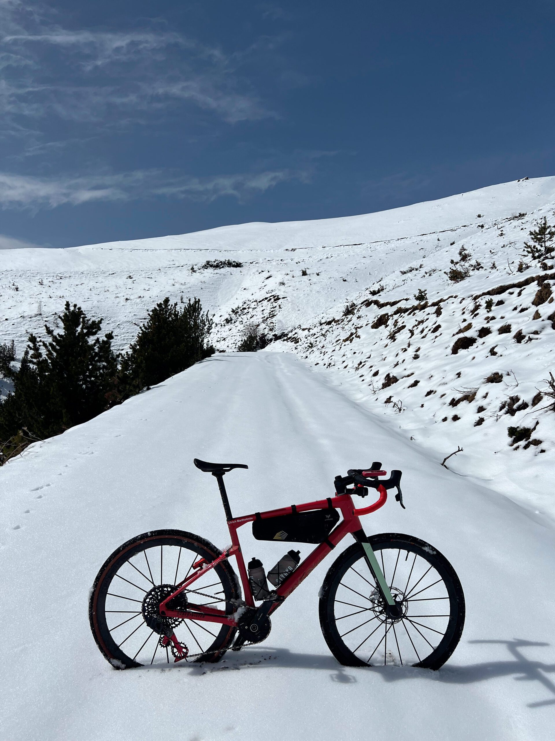 Puntualmente a las 5:00AM, ahora si vestido con culotte largo, Ulrich abandona Puigcerdá a pedales. Antes de ver salir el sol deberá completar el ascenso hasta el Coll de la Creueta situada a 1900 metros. El ascenso por la vertiente norte lo realiza a temperaturas que llegan a los -10 grados.