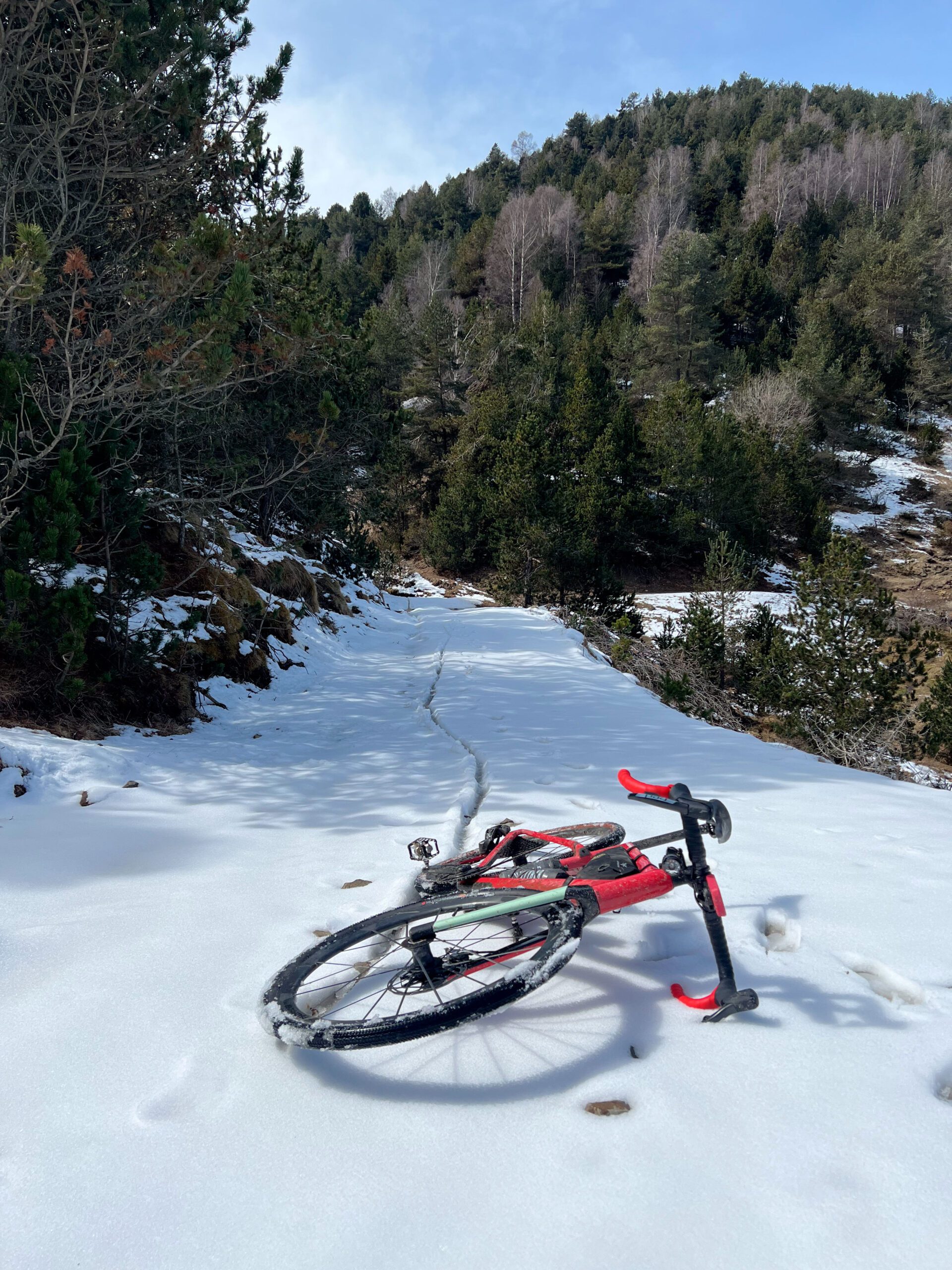 La situación meteorológica de ola de frío y nieve unas semanas antes del Challenge nos obligó a alterar el track original, eliminando las zonas por pistas a más de 1200m en los pirineos para evitar tener que caminar hasta 30km sobre nieve con la bici a cuestas.