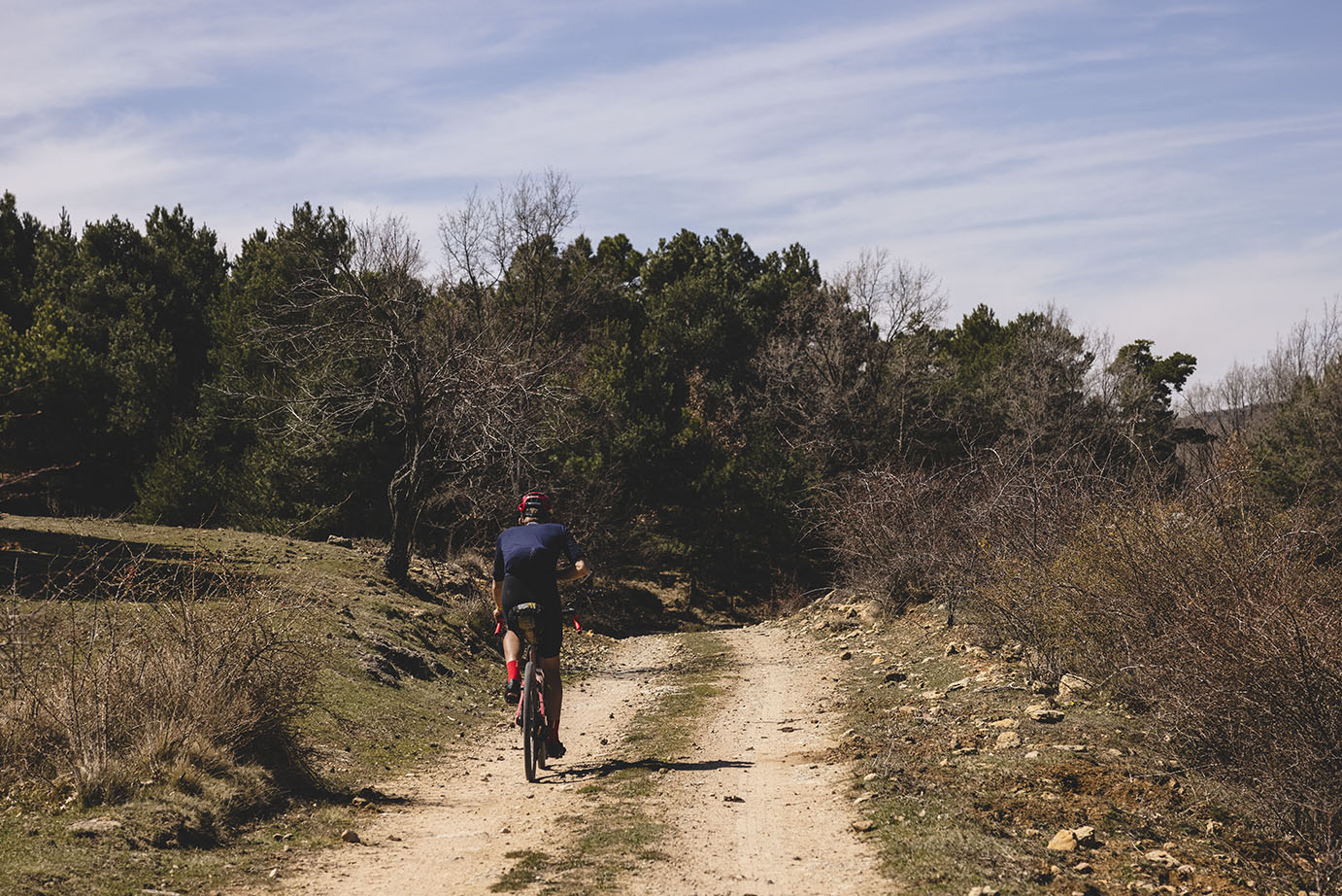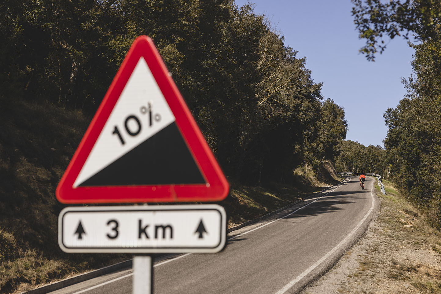 La buena meteorología y la motivación de ver que estaba pedaleando por debajo de sus previsiones le llevaron a seguir con un buen ritmo por la zona boscosa y de montaña que va desde Girona a Sant Jaume de Llierca. Esta zona era conocida para él quien unas semanas antes estuvo pedaleando por ellas.