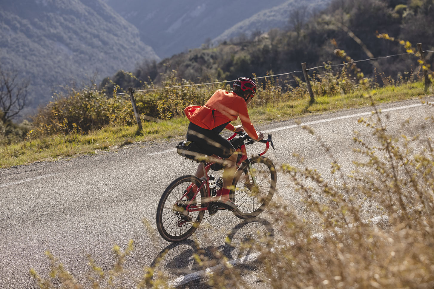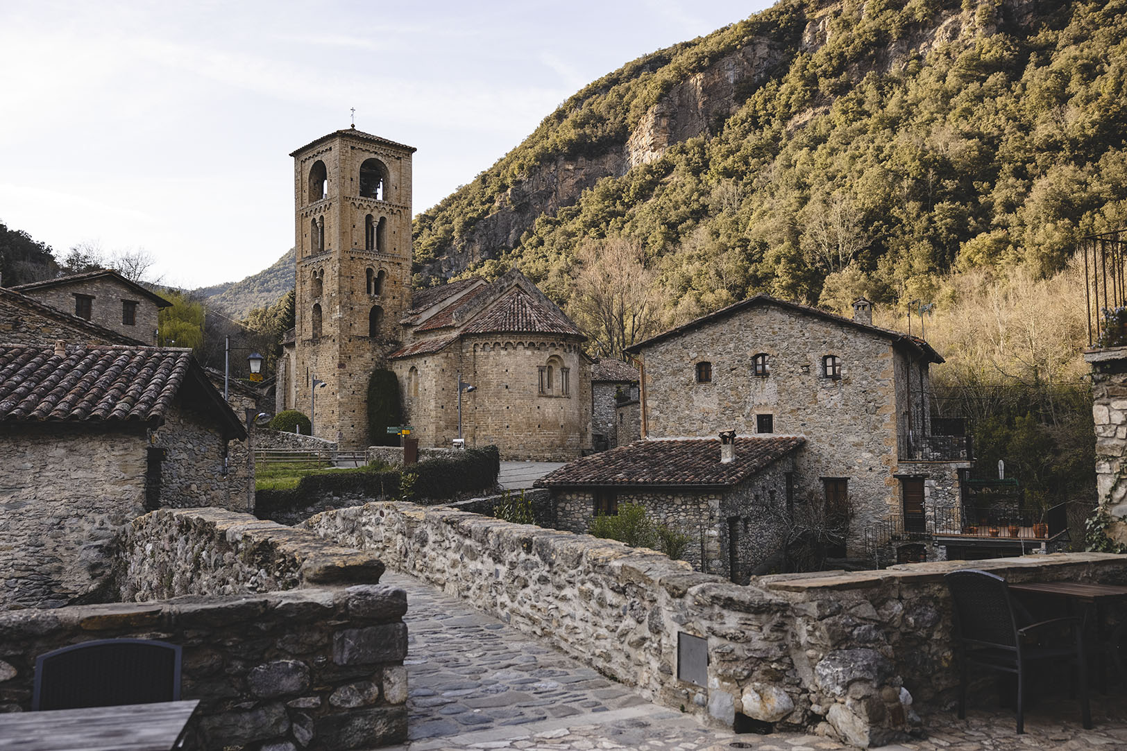 A media tarde y con muy buena temperatura, Ulrich llegaba a Sant Jaume de Llierca y tomaba la preciosa carretera de montaña en dirección a Beget que le conduciría hasta la zona pre pirenaica. Este tramo de asfalto servía de “recuperación” después de haber estado pedaleando hasta el momento en gran parte sobre pista.