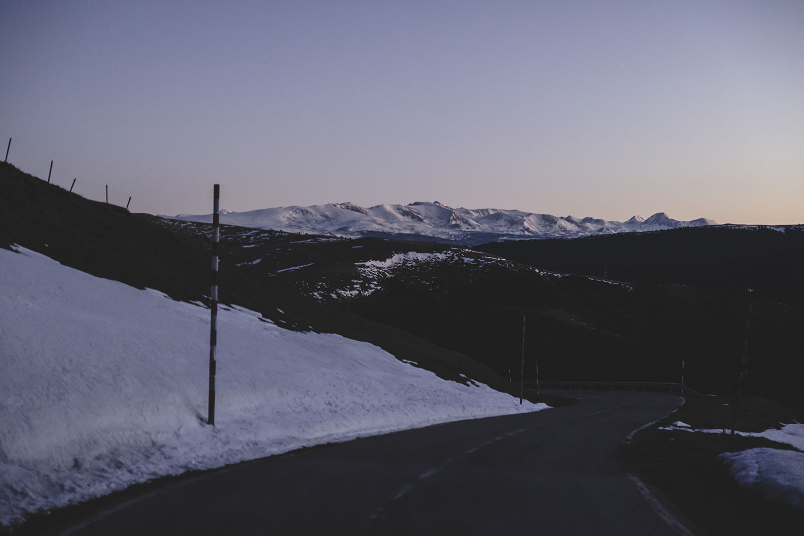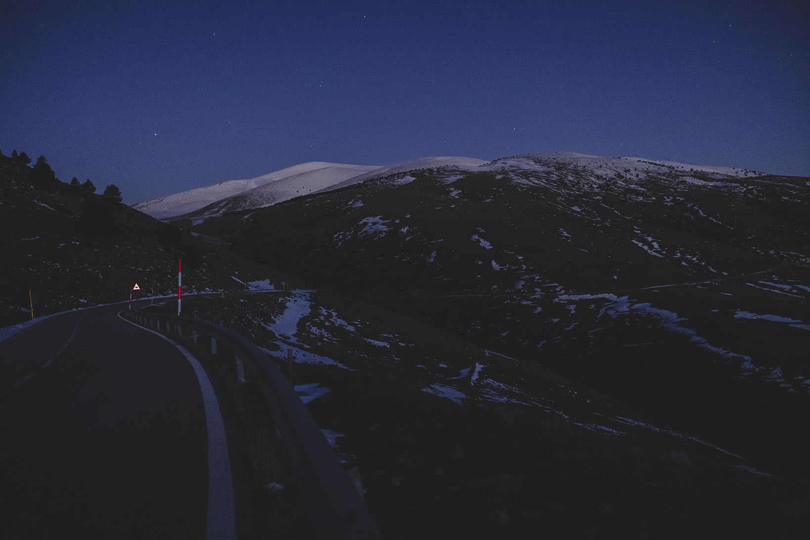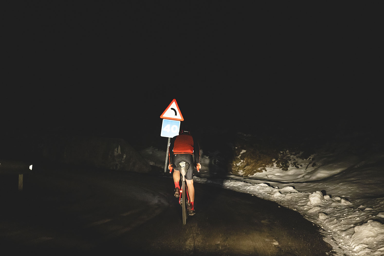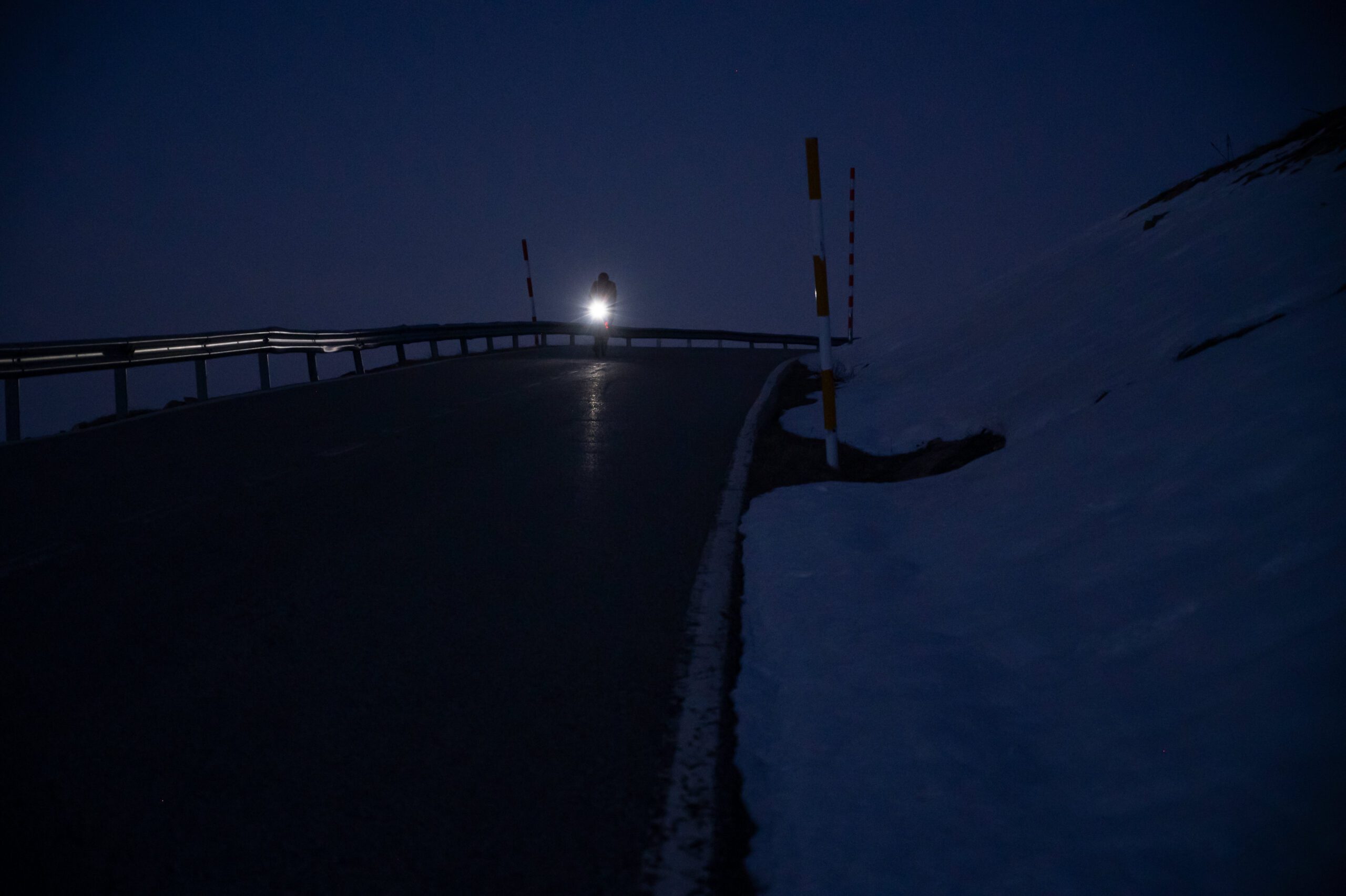 Con la estrategia decidida, Ulrich sale de Ribes de Freser en dirección a Puicerdá por la Collada de Tosses. A los pocos minutos de salir ya tiene que encender sus luces porque el valle esta oscuro. En esta zona empezamos a encontrar nieve en los laterales de la carretera. Ulrich llega al Coll de Tosses a las 21:51. Y una temperatura de -2 grados.