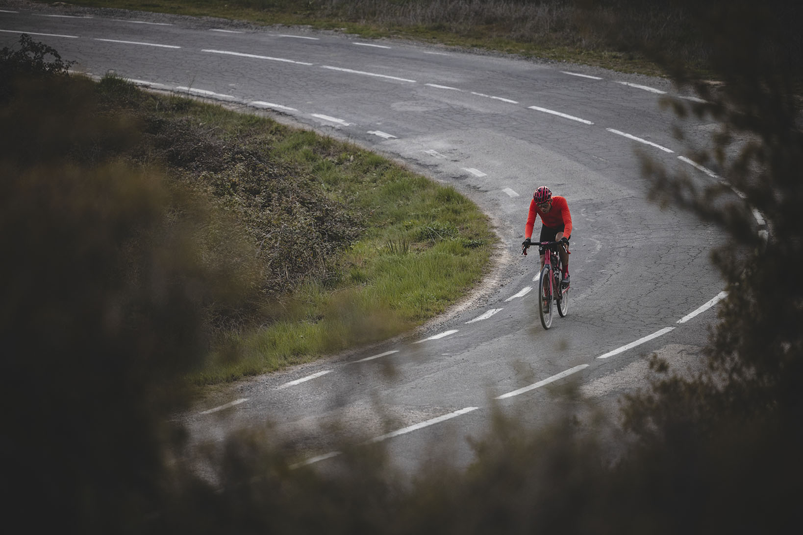 Ulrich para 2 minutos para equiparse con su chaqueta de plumas y su cortavientos para iniciar el descenso de 28km que le queda hasta Puigcerdá. Sabiendo que una vez allí llegará a un hotel decide no perder tiempo y realiza el descenso con su culote corto, pese a la temperatura y sensación térmica que sabe que le van a acompañar en los siguientes Kms.